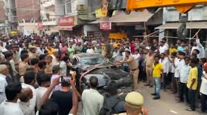 प्रयागराज के राजरूपपुर इलाके में एक तेज रफ्तार जगुआर कार ने दिवाली की खरीदारी कर रहे आठ लोगों को रौंद दिया,कार की चपेट में आने से एक व्यक्ति की मौके पर ही मौत हो गई,जबकि कार चालक समेत 7 अन्य लोग घायल घायल हुए हैं, जिनमें 2 बच्चे भी शामिल हैं,सभी घायलों को इलाज के लिए अस्पताल में भर्ती कराया गया है।